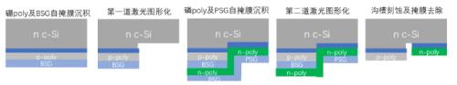 创新性地利用硼、磷扩散高温过程中自然形成的BSG(硼硅玻璃)和PSG(磷硅玻璃)层作为图形化掩膜,既杜绝了外源性掩膜及清洗过程中的污染源引入,又大幅降低了物料成本,更将分置法的工艺流程缩短至与一步法相当的水平。