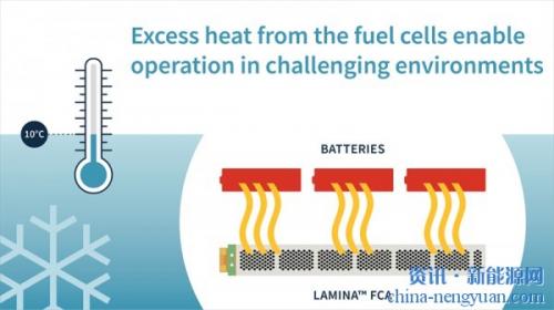 然而,当与燃料电池结合时,当温度下降时,电池失去容量的问题就消失了。燃料电池的废热能够将电池保持在一个有利的温度,这意味着它们的容量不会下降。