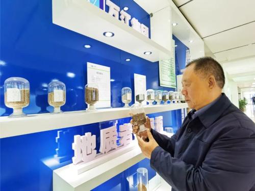 陈泽民董事长在地质岩样展柜前观看岩土样本