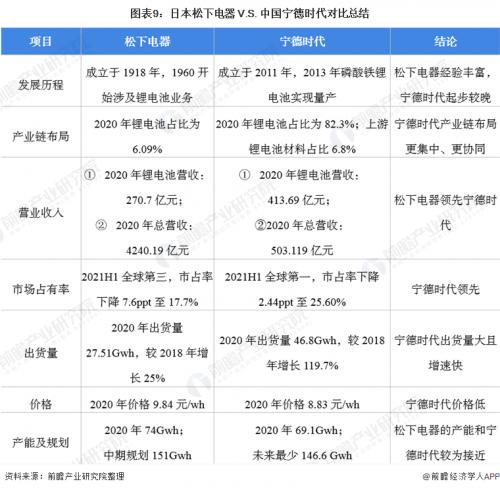 日本松下电器V.S.中国宁德时代对比总结