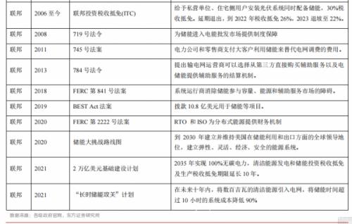 政策支撑叠加市场化成熟,加速美国储能行业发展