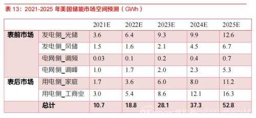 美国储能应用场景包括表前和表后,2025年预计市场空间超52GWh