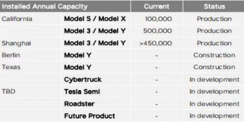 Cybertruck 2022年开始生产,次年大量生产;Semi和Roadster 2023年开始生产;
