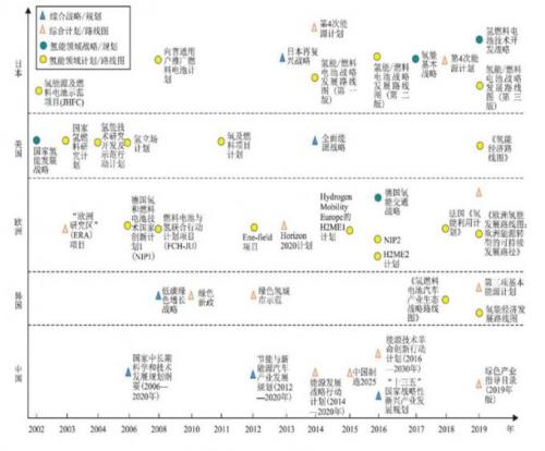 2000年以来世界主要经济体:美国/日本/欧洲/韩国/中国在氢能源领域积极布局