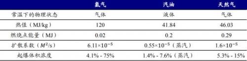 氢气相较于汽油、天然气,热值与相对安全性更高