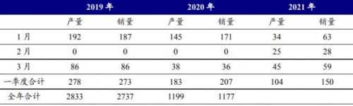 2021年Q1燃料电池汽车产销量不及2019年和2020年同期