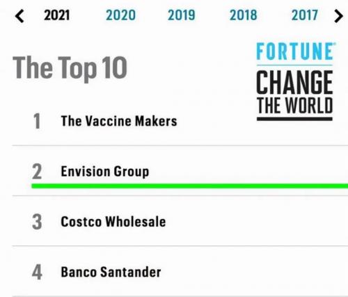 在《财富》杂志评选的“改变世界50家企业”榜单中,远景科技成为排名最高的独立企业。世界最大会员超市开市客、世界最大商用车制造商戴姆勒,都排在远景科技之后。远景科技在新能源市场上的地位,可见一斑。