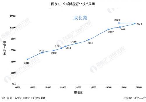 2010-2019年,全球储能行业专利申请人数量及专利申请量均呈现增长态势。虽然2020年全球储能行业专利申请数量有所下降,但是这两大指标数量仍较多。整体来看,全球储能技术处于成长期。