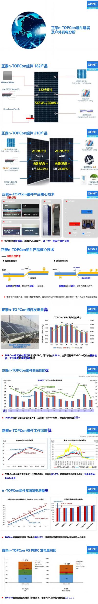 本文主要介绍了正泰在n型TOPCon太阳电池及组件的产业化进展,通过电池工艺的持续优化,在大尺寸电池上实现24.5%平均量产效率,并结合组件端无损切割、高密度封装等增效的方案,进一步提升组件效率。此外,根据p型PERC双面光伏组件及n型TOPCon双面光伏组件的户外发电特性及衰减率等实数据对比发电量模拟结果,验证了正泰n型TOPCon双面太阳电池组件的发电量实际增益。