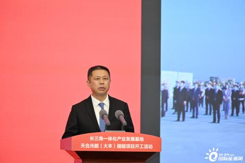 5月17日,盐城举行长三角一体化产业发展基地重大项目“云开工”仪式,天合(大丰)储能系列项目正式开工,天合光能股份有限公司董事长高纪凡在现场致辞。