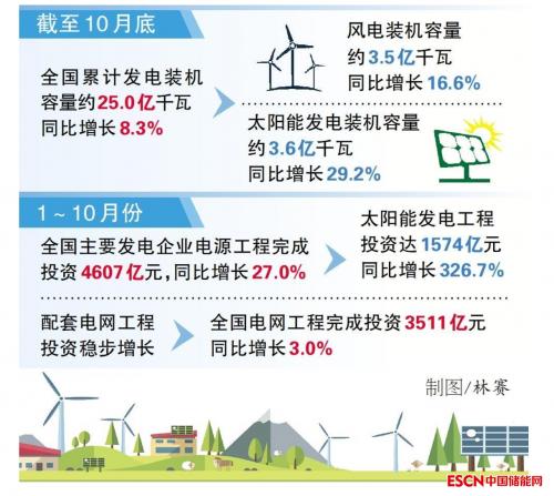 据悉,目前我国已具备完备的新能源全产业链体系,新能源开发建设成本不断下降,风电、光伏发电已全面进入平价无补贴、市场化发展的新阶段。今年以来,以沙漠、戈壁、荒漠地区为重点的大型风电光伏基地建设和屋顶分布式光伏开发建设提速,新能源投资明显加快。1~10月份,全国主要发电企业电源工程完成投资4607亿元,同比增长27.0%,其中,太阳能发电工程投资达1574亿元,同比增长326.7%。
