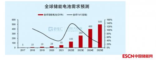 高工产业研究院(GGII)预计,“十四五”储能锂电池的总出货量年复合增长将超过50%,到2025年,全球储能电池出货量将逼近500GWh;到2030年,全球储能电池市场将达2万亿。其中,海外市场是重要增量。