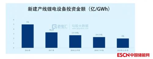 其次,近几年锂电池产线设备价格的下降,也令到整个行业准入门槛有了一些降低,规模效应叠加设备零部件国产化导致锂电设备成本大幅下降,目前国内锂电池产线单GWh产能投资价格已从原来的10亿元左右降至2.4亿元以下,降幅非常明显。