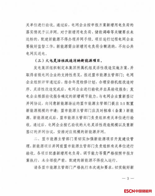 该通知指出,对于储能调峰等关键要求不达标的,配建新能源不得办理并网手续:
