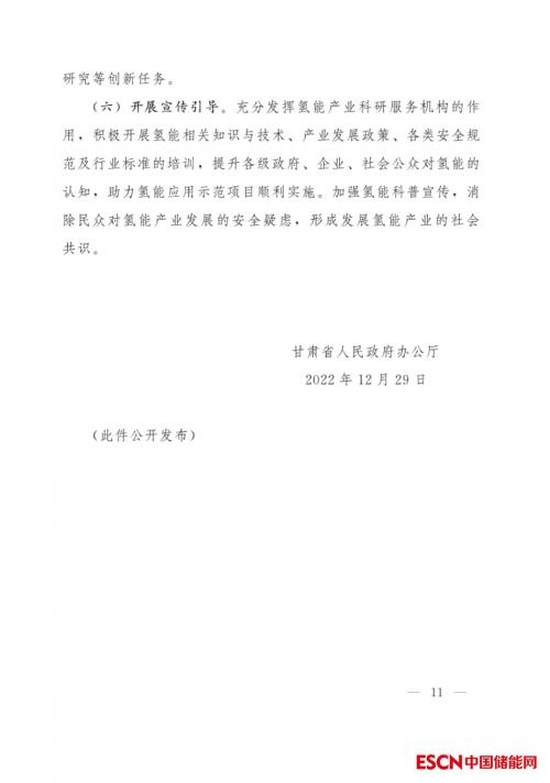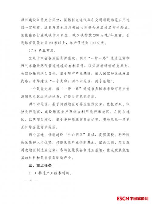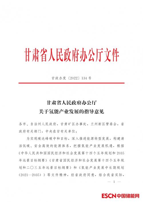 中国储能网讯:1月3日,甘肃省人民政府办公厅发布关于氢能产业发展的指导意见,意见指出,支持在高速公路服务区内布局建设“分布式光伏+制氢、储氢、加氢”一体化示范应用。培育“风光发电+氢储能”一体化应用模式,探索氢储能与波动性可再生能源发电协同运行的商业化运营模式,对比研究氢储能与电池储能、熔盐储能等其他储能方式单独或混合储能的技术特点和经济性。