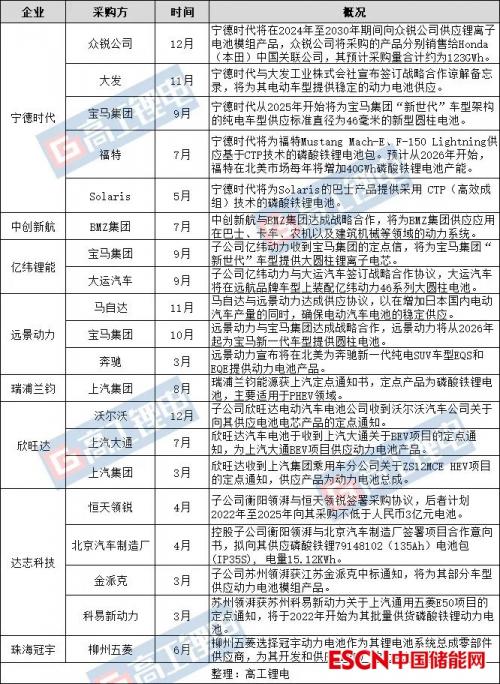 从一系列车企订单来看,巨额订单并非只集中在头部电池企业手中,电池新势力也获得了多个车企的订单。