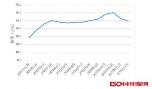 中国储能网讯:近期,碳酸锂等主要原材料价格持续下跌,以磷酸铁锂电池正极原材料电池级碳酸锂价格为例,截至1月9日,电池级碳酸锂价格报价约为49.2万元/吨,已跌破50万元/吨大关。