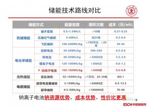 与锂离子相比,钠离子的工作原理、电化学储能机制大体相同,只是因为钠原子比锂大一些,因此电池质量/体积能量密度都不如锂离子,但钠离子电池也是基于离子在正负极材料的相互转换实现电能化学能变化,所以理论上循环寿命也是可以接近锂离子电池的。