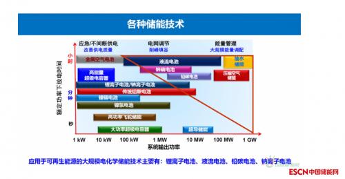 这张图大家想必不会陌生,很多人都引用过。其中,横坐标代表不同储能技术系统输出功率,越往右就是系统功率越大,纵坐标是放电时长,越往上越适合长时储能,因此未来可以做成大规模储能的种子选手,也就是右上角的这几个。