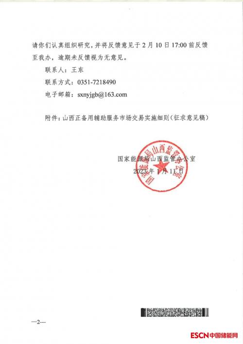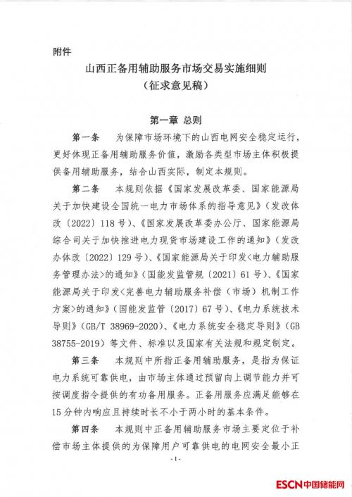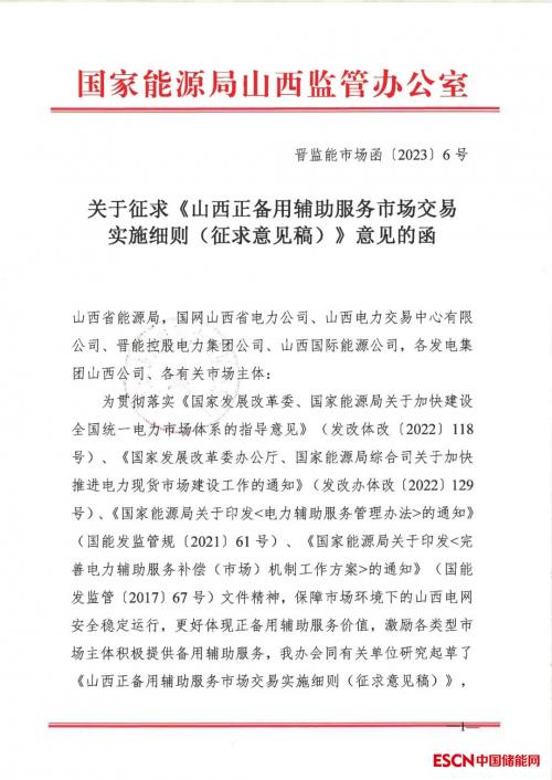 中国储能网讯:1月13日,国家能源局山西能源监管办发布关于征求《山西正备用辅助服务市场交易实施细则(征求意见稿)》意见的函。