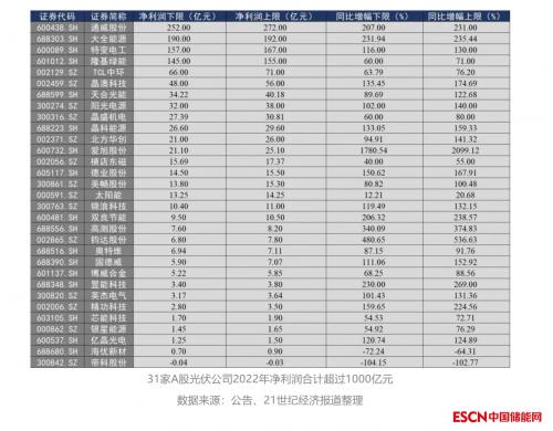 21世纪经济报道记者统计发现,截至目前,共计31家A股光伏企业发布了2022年度业绩预告——仅有两家光伏材料类公司去年净利润下滑,其他公司净利润均呈现大幅增长。