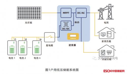 户用低压储能系统是指电池电压范围40~60V的储能系统,由若干个电池并联后连接到逆变器,经逆变器内部的隔离DC-DC,在母线处与光伏MPPT输出的直流电交汇耦合,最终通过逆变输出转化为交流电并网,部分逆变器具备有后备输出功能。