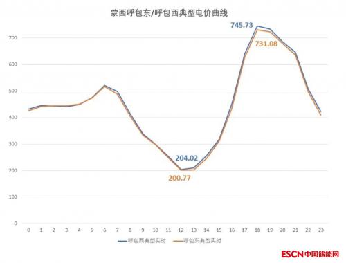 蒙西电价典型曲线呈现清晨微弱高峰,中午低谷,入夜高峰,且峰谷差极大。