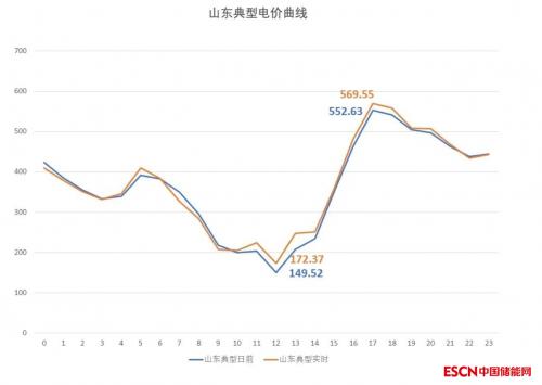 山东电价典型曲线呈现深夜与凌晨两次小高峰,正午低谷,入夜前明显高峰,日间峰谷差大。