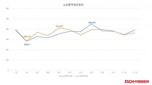 山东风电结算最高价格为8月的479.75元/MWh,最低为2月的311.56元/MWh,差距超过35.05%。