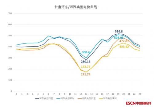 甘肃电价典型曲线早晨呈现小高峰,午后显著低谷,入夜前明显高峰。