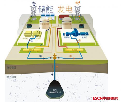 “在用电低谷时把空气压缩,存储在地下盐穴,完成一次充电的周期为8小时;在用电高峰时,释放高压空气,每小时能发电6万千瓦时,可以连续发电5个小时,发电量可达30万千瓦时。”韩月峰介绍。