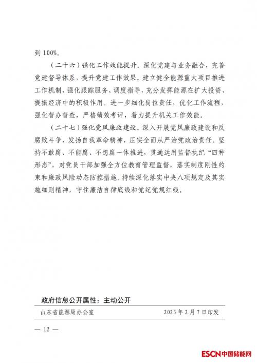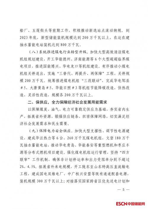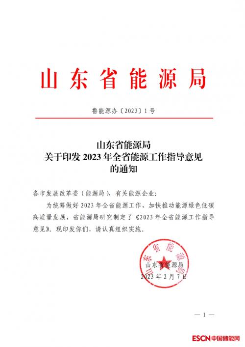 中国储能网讯:2月7日,山东省能源局下发《关于印发2023年全省能源工作指导意见的通知》。其中,文件表示,实施新型储能“百万千瓦”行动计划,推动泰安压缩空气储能等项目建设,建成三峡庆云二期、华润财金东营等示范项目。到2023年底,新型储能装机规模达到200万千万以上。