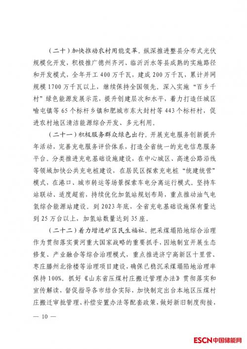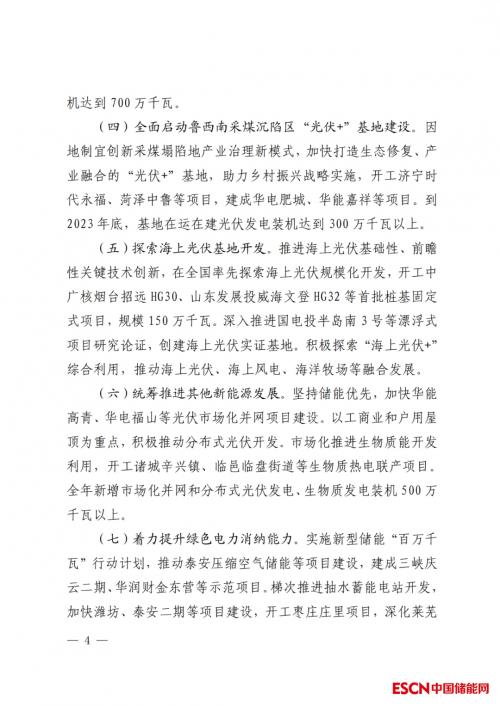 全面启动鲁西南采煤沉陷区“光伏+”基地建设:因地制宜创新采煤塌陷地产业治理新模式,加快打造生态修复、产业融合的“光伏+”基地,助力乡村振兴战略实施,开工济宁时代永福、菏泽中鲁等项目,建成华电肥城、华能嘉祥等项目。到2023年底,基地在运在建光伏发电装机达到300万千瓦以上。