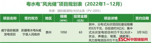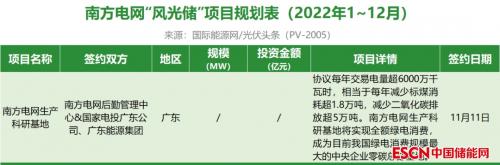 截至2022年12月31日,南方电网共签约(规划)1个风光储项目。