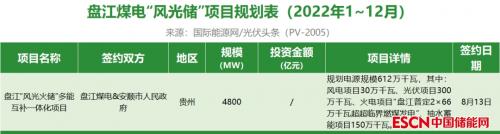 截至2022年12月31日,盘江煤电共签约(规划)1个风光储项目,明确规模共计4.8GW。