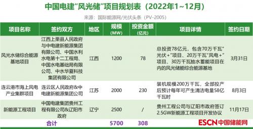 截至2022年12月31日,中国电建共签约(规划)3个风光储项目,其中已明确项目规模为5.7GW,明确投资金额308亿元。
