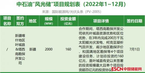 截至2022年12月31日,中石油共签约(规划)1个风光储项目,明确规模共计2GW,明确投资金额160亿元。
