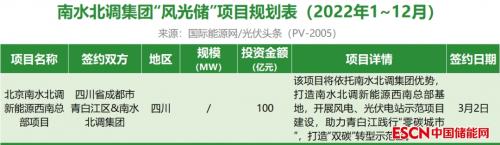 截至2022年12月31日,南水北调集团共签约(规划)1个风光储项目,明确投资金额为100亿元。