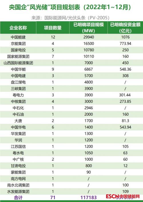截至2022年12月31日,国家能源集团共签约(规划)7个风光储项目,明确项目规模共计10.11GW,有1个项目明确投资金额160亿元。