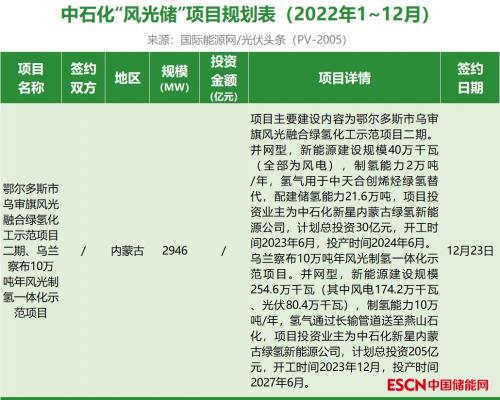 截至2022年12月31日,中石化共签约(规划)1个风光储项目,明确规模共计2.946GW。