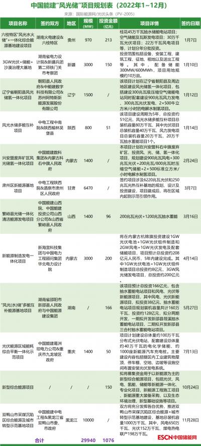 截至2022年12月31日,中国能建共签约(规划)12个风光储项目,明确项目规模共计29.94GW。此外,有8个项目明确投资金额,共1076亿元。