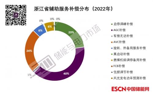 2022年浙江省的辅助服务市场运行数据显示,浙江省全年辅助服务补偿额为56740万元,其中AGC调频辅助服务补偿总量为22409万元,占比接近40%,是最主要的辅助服务形式。