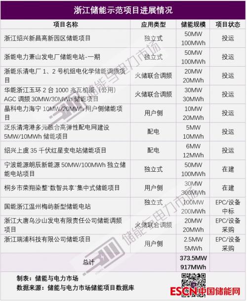 浙江省储能示范项目20%进入实质阶段
