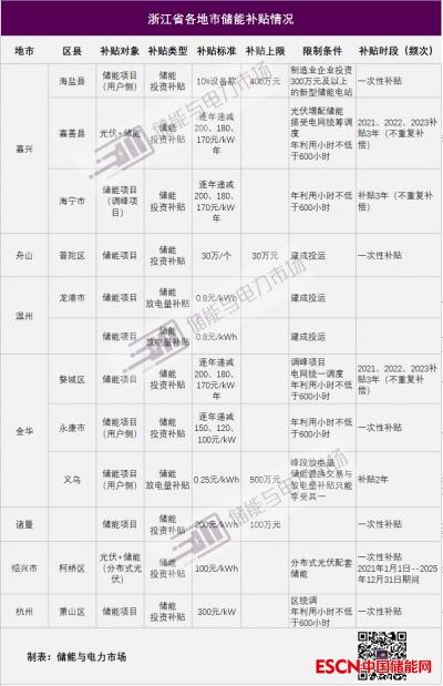 浙江省储能政策情况