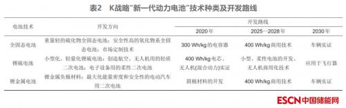 围绕下一代动力电池技术,韩国政府将拉动公私合作,支持大规模电池研发。K战略中,韩国政府对研发路线进行了规划,主要围绕新一代电池制造技术以及实现全固态电池、锂硫电池、锂金属电池的商用化,如表2所示。