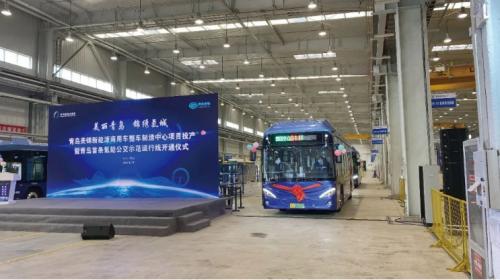 图|今年1月,青岛市首条氢能源公交示范运行线在青岛西海岸新区开通,首批50辆氢能源公交车投入运营。