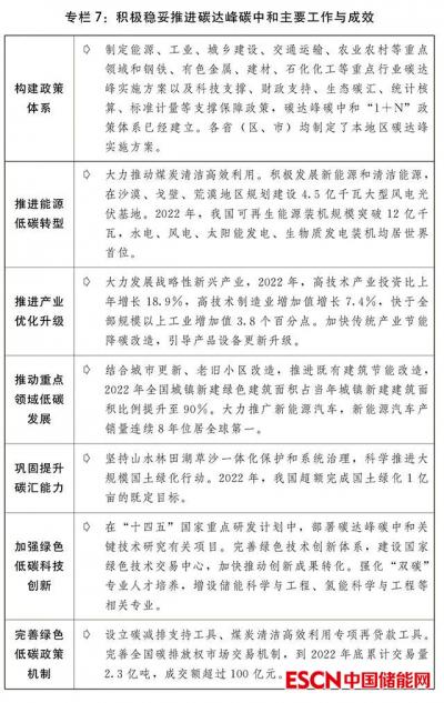 二是碳达峰碳中和积极稳妥推进。碳达峰碳中和“1+N”政策体系构建完成,重点领域碳达峰实施方案和配套保障措施制定出台,“碳达峰十大行动”扎实推进。全国碳排放权交易市场平稳运行。坚持“先立后改”,加快建设先进清洁支撑性煤电,推动煤电机组节能降碳改造、灵活性改造、供热改造“三改联动”,积极发展新能源和清洁能源,第一批以沙漠、戈壁、荒漠地区为重点的大型风电光伏基地加快建设,我国可再生能源总装机突破12亿千瓦。重点行业节能降碳大力推进,提高新建建筑节能水平,积极发展绿色建筑,大力推广新能源汽车,持续推动充电基础设施建设,加快推进大宗货物和中长距离货物运输“公转铁”、“公转水”。单位国内生产总值二氧化碳排放下降0.8%。积极参与联合国气候变化沙姆沙伊赫大会各项谈判磋商,推动大会取得积极成果。