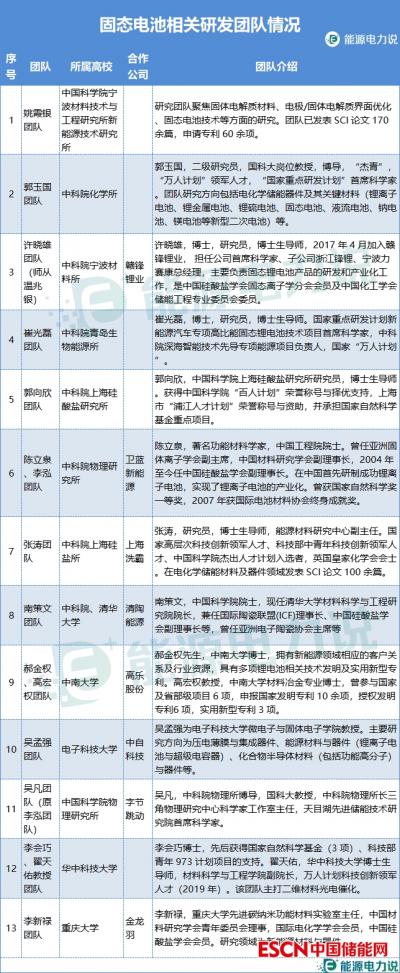 固态电池的产业化进程得到了大批科研团队和企业的支持。产学研结合是推动固态电池产业化的重要途径。在国内锂电池产业链上,许多优秀企业开展自主研发或与科研团队合作,如许晓雄与赣锋锂业合作、张涛与上海洗霸合作等。