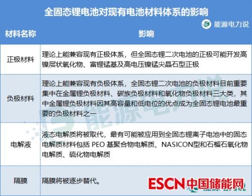 全固态电池或将对传统液态电池四大材料体系造成较大的冲击。正极材料未来更可能使用高比能材料;负极材料中金属锂有望应用;电解质体系中液态溶剂将被完全取代;隔膜将被逐步替代。