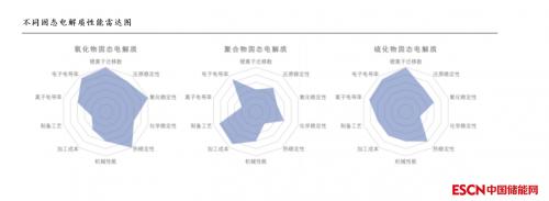 在电解质具体性能方面,氧化物电解质表现较为均衡,而其他类型的电解质则存在性能短板。氧化物电解质在还原、氧化和热稳定性等方面表现出色,但硫化物电解质的化学稳定性较差。聚合物电解质需要进一步提高锂离子迁移数和氧化稳定性等性能指标。